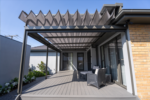 The Retrofit ShadeDeck® Roof delivers the same sleek, pleated, water resistant retractable roof as the ShadeDeck® Pergola system—but designed to be installed on top of your existing pergola. This roof-only solution is custom-built to fit your structure, adding year-round protection while keeping the original frame. Fully manual and compatible with Executive Pergola's ScreenWalls®, it transforms open pergolas into enclosed, all-season outdoor spaces—perfect for Sukkos or everyday use.