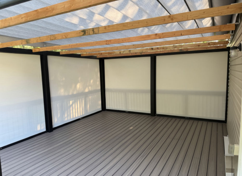 This deck in Lakewood New Jersey was transformed into the Elevated Sukkah, a stylish, functional outdoor space perched on stilts and connected seamlessly to the home. Executive Pergolas installed an aluminum pergola with a retractable ShadeDeck® roof system that glides neatly under a protective pelmet when not in use, shielding it from the elements. The manual ScreenWalls® were added to enclose the pergola easily, creating a private, rain- and sun-protected area ready for Sukkos celebrations. Timber beams with pre-drilled grooves were provided, allowing the Sukkah to be assembled in minutes by slotting the beams into place and rolling out the Schach. After Sukkos, these beams are removed, restoring the pergola’s open-air, year-round outdoor living aesthetic. This project perfectly combines functionality, convenience, and elegance, making it ideal for entertaining, dining, or enjoying the outdoors in comfort throughout the year.